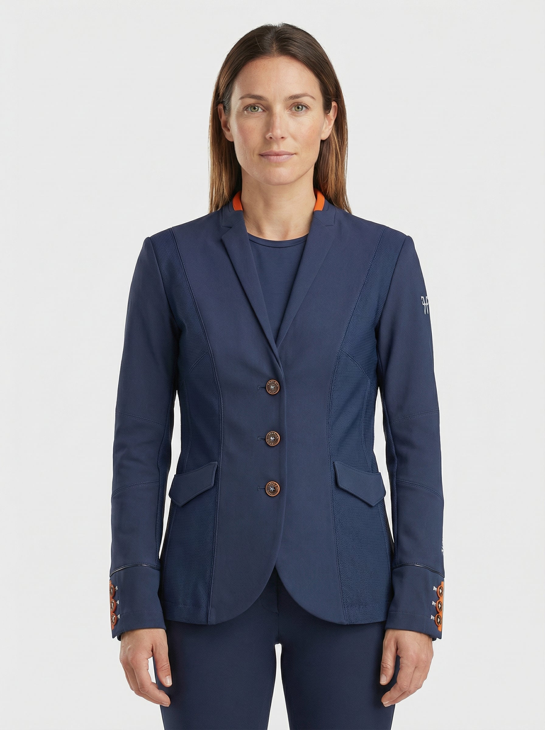 Veste Bleu détails orange, cintrée.